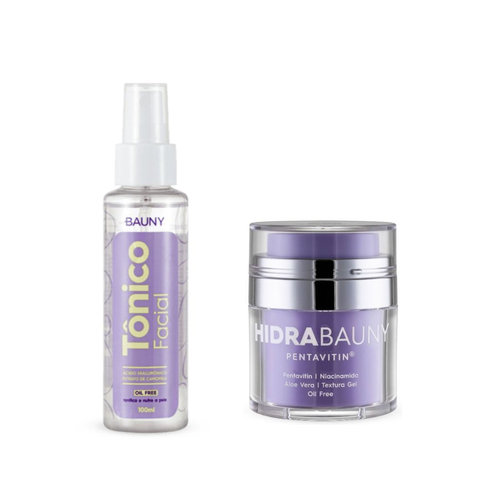 Eleve o nível do seu cuidado diário com o combo que prepara e recupera sua pele. Comece equilibrando o pH e combatendo a flacidez com o Tônico Facial, rico em ácido hialurônico e camomila. Em seguida, simplifique tudo com o HidraBauny 3×1: um único produto que hidrata, prepara para a make e serve como máscara noturna.
